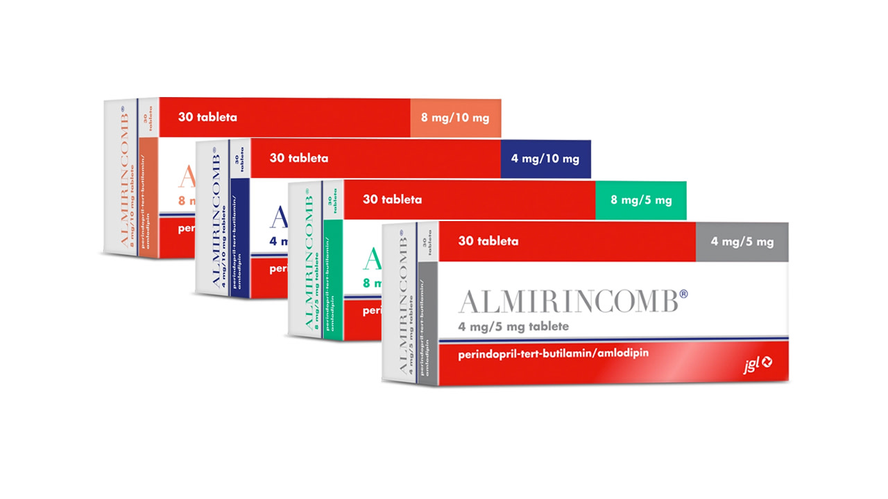 SAMO ZA ZDRAVSTVENE RADNIKE. Nositelj odobrenja za stavljanje lijeka u promet: JADRAN-GALENSKI LABORATORIJ d.d., Svilno 20, 51000 Rijeka. Brojevi odobrenja za stavljanje lijeka u promet: Almirincomb 4 mg/5 mg tablete: HR-H-203071244, Almirincomb 4 mg/10 mg tablete: HR-H-517504194, Almirincomb 8 mg/5 mg tablete: HR-H-063616380, Almirincomb 8 mg/10 mg tablete: HR-H-959287726. Za potpuni uvid u informacije o lijeku, pogledajte odobreni sažetak opisa svojstava lijeka i uputu o lijeku koji su dostupni na internetskoj stranici Agencije za lijekove i medicinske proizvode (www.halmed.hr/Lijekovi/Baza-lijekova/).
